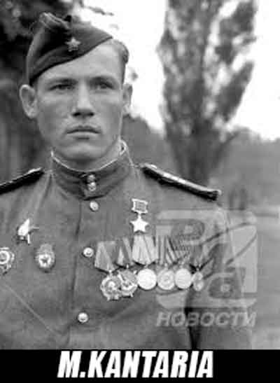 Bandera de la Victoria oficial, el estandarte número 5 del 3er Ejército de Choque, colocada por los exploradores Mijaíl Yegorov y Melitón Kantaria, pertenecientes al 756º Regimiento de Fusiles del coronel Zínchenko.