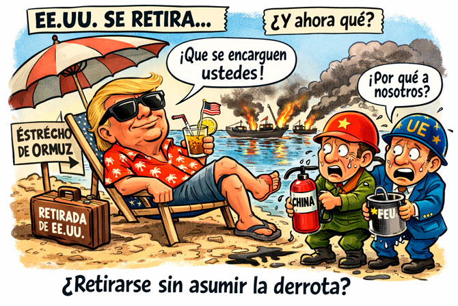 TRUMP SE INHIBE DEL CONTROL DEL ESTRECHO DE ORMUZ, INSTANDO A CHINOS Y EUROPEOS A INMISCUIRSE EN SU APERTURA