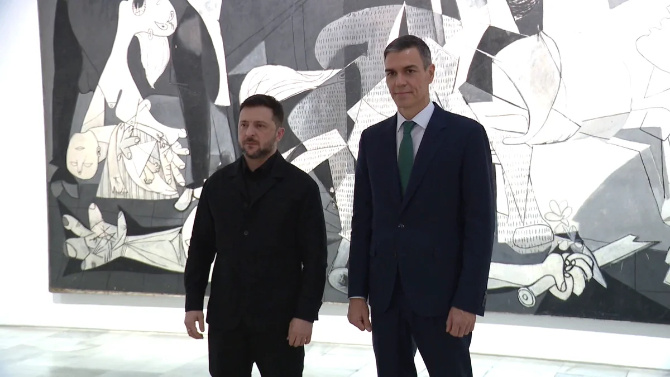 Pero quizá nada ilustra mejor la manipulación política de la guerra que el uso del Guernica por parte de Sánchez durante la visita de Zelenski. Presentar ese símbolo universal del sufrimiento civil causado por el fascismo como un emblema para legitimar el envío de armas es, sencillamente, una agresión a la memoria histórica, una instrumentalización grotesca de un icono antifascista para encubrir un negocio geopolítico. La ofensa es doble cuando se silencia que en el Estado ucraniano contemporáneo se tolera, promueve e incluso se enaltece simbología asociada al colaboracionismo nazi, desde el culto oficial a Stepán Bandera —figura política vinculada a la Alemania hitleriana y responsable de matanzas de civiles— hasta la integración del batallón Azov, con iconografía neonazi explícita, en las estructuras militares regulares. Convertir el Guernica, obra nacida para denunciar la barbarie fascista, en un accesorio retórico que tapa estas realidades no es solo cinismo: es una profanación política, un intento de vaciar de contenido la memoria antifascista para ponerla al servicio de una narrativa belicista y de los intereses de la industria armamentística occidental.
