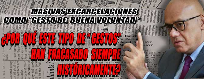 Jorge Rodríguez, presidente de la Asamblea Nacional venezolana y hermano de la presidenta interina del país, Delsy Rodríguez, ha anunciado la excarcelación de un considerable número de presos políticos por delitos de violencia y conspiración antigubernamental , como "un gesto unilateral" para afianzar nuestra decisión inquebrantable de afianzar la paz de la República. Pero, históricamente ¿cuál ha sido el resultado de esos "gestos de paz" , a lo largo de las últimas décadas, para los gobiernos revolucionarios latinoamericanos?