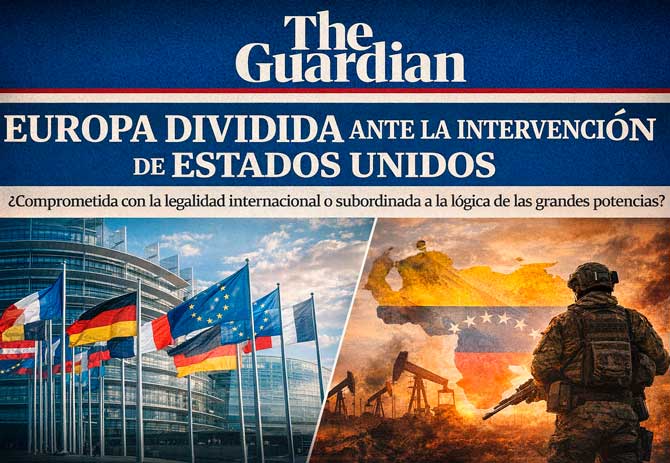 En un artículo publicado por Patrick Wintour en el periódico británico The Guardian, con el título “European leaders appear torn in face of new world order after Venezuela attack”, se ofrece un análisis del desconcierto que ha generado entre los líderes europeos la reciente operación militar estadounidense en Venezuela y el secuestro forzado de Nicolás Maduro. Según afirma el autor, este episodio ha puesto a prueba los principios que Europa dice defender en materia de derecho internacional y soberanía nacional.