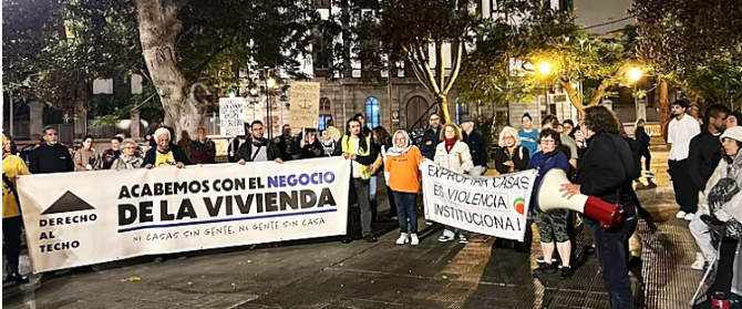 El acto celebrado en La Palmas de de G.C se sumó a un creciente número de protestas en todo el Estado, donde diversos colectivos por el derecho a la vivienda han venido alertando sobre el giro regresivo en materia de protección social y sobre la falta de medidas estructurales que frenen la crisis habitacional.