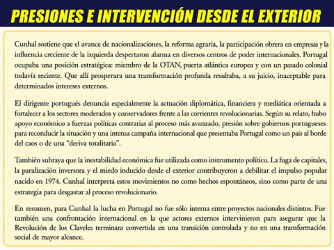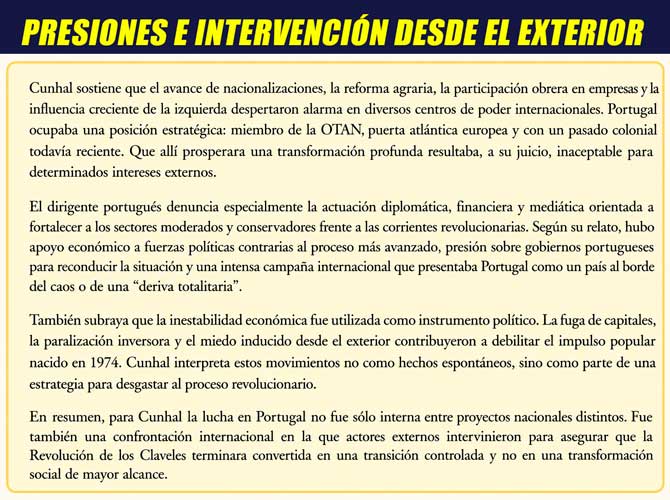 Cunhal sostiene en su libro que desde muy pronto comenzó una operación para contener el proceso. No siempre mediante violencia abierta. A menudo mediante campañas de prensa, maniobras institucionales, creación de miedos económicos y la construcción de una narrativa que presentaba cualquier cambio profundo como caos inminente.