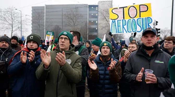 En ese contexto no nace Mercosur, pero sí se reactiva y se impone. Un tratado que llevaba décadas atascado se acelera cuando la industria europea, especialmente la alemana, tocada por la crisis energética y por una guerra que no responde a los intereses de sus pueblos, necesita desesperadamente mercados donde colocar sus productos. Mercosur reaparece entonces como tabla de salvación. Y, como siempre, el precio lo paga quien no manda: el sector primario. La agricultura. El campo. La soberanía alimentaria.