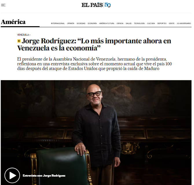 Entrevista a Jorge Rodríguez en El País: “Lo más importante ahora en Venezuela es la economía”