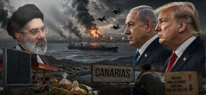 La guerra de Irán se libra a miles de kilómetros de Canarias, pero sus efectos se sienten en cada surtidor, en cada ticket del supermercado y en cada empresa que depende del transporte para sobrevivir. Lo que ocurre en Oriente Medio ha vuelto a demostrar una realidad incómoda: en una economía profundamente dependiente del exterior, cualquier sacudida internacional termina golpeando con especial dureza a la población trabajadora del archipiélago.